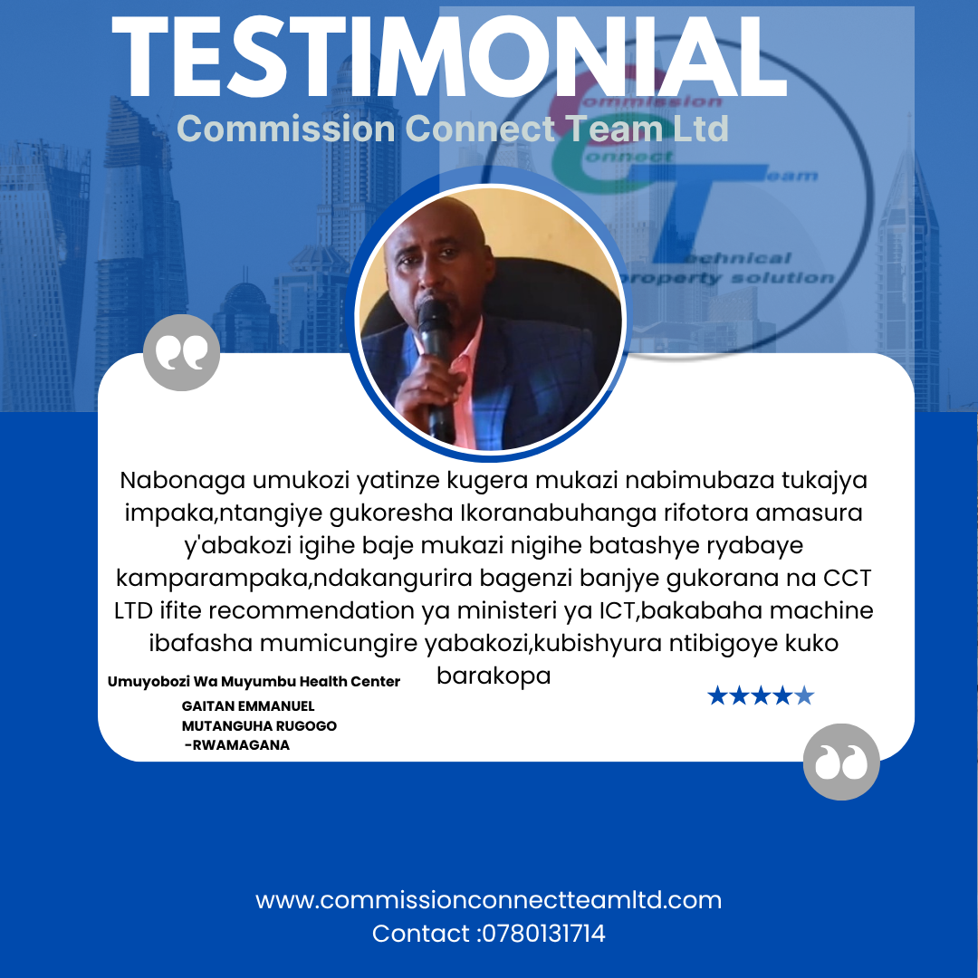 Visit / view moreUmuyobozi Aravuga ukuntu ikoranabuhanga ritangwa na Commission Connect Team Ltd Ryamufashije mu gukemura ibibazo bari bafite. Iyumvire nawe!